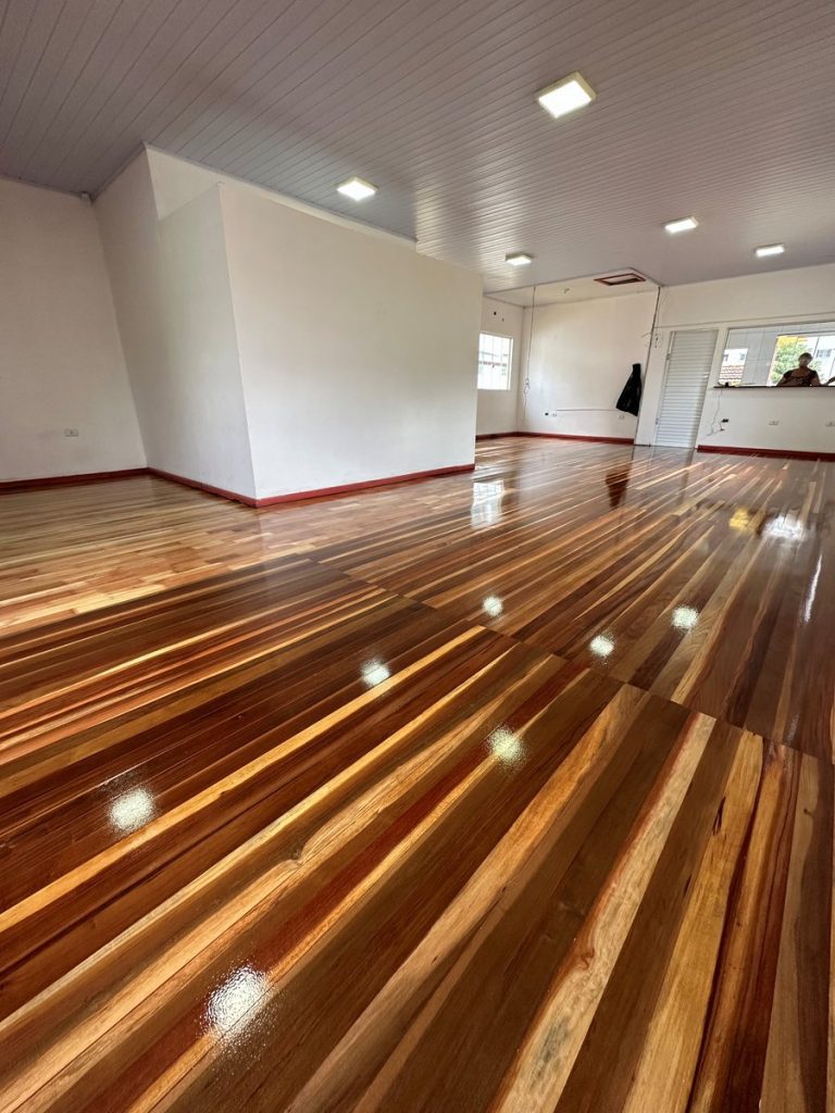 A aplicação de Synteko é a escolha ideal para quem busca brilho intenso e resistência superior em pisos de madeira.