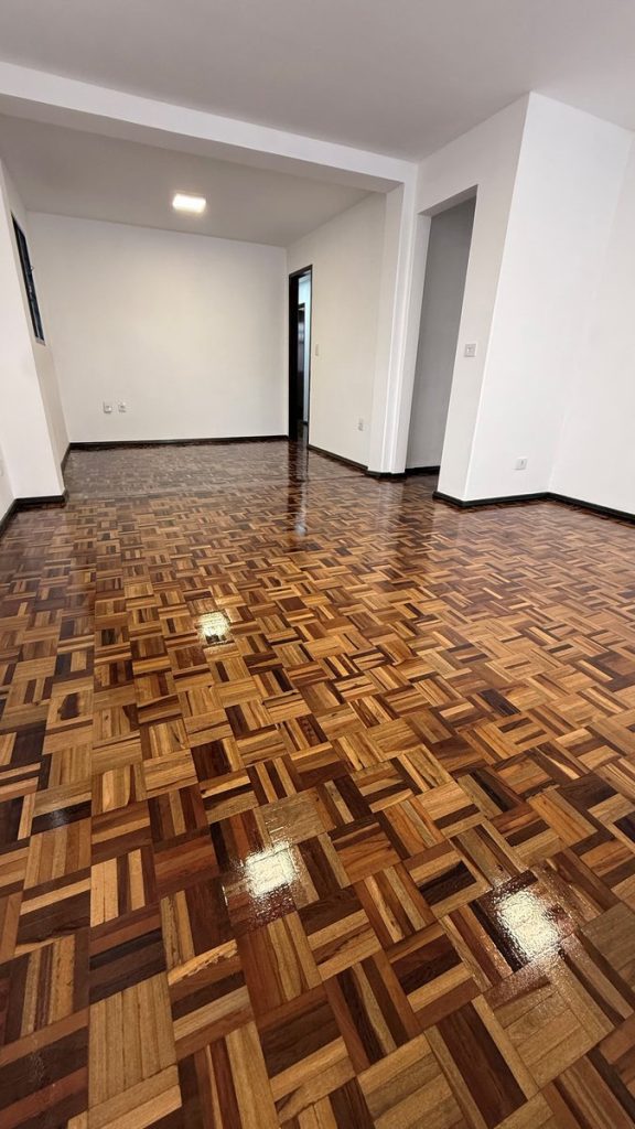 O resultado é um piso renovado, com brilho homogêneo e aspecto original preservado — mantendo o charme e a elegância que tornam o parquet único.